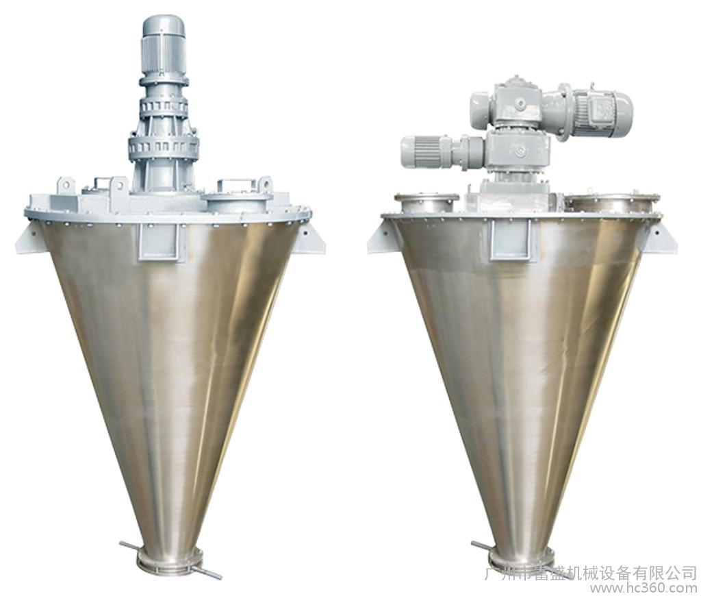 雙螺旋錐形混合機根據攪拌器結構不同可分爲錐形單螺旋混合機、錐形雙螺旋混合機、錐形三螺旋混合機、錐形螺條混合機等,我成都銳馳機械可根據客戶不同的定制要求,提供各種類型的錐形螺旋混合機。